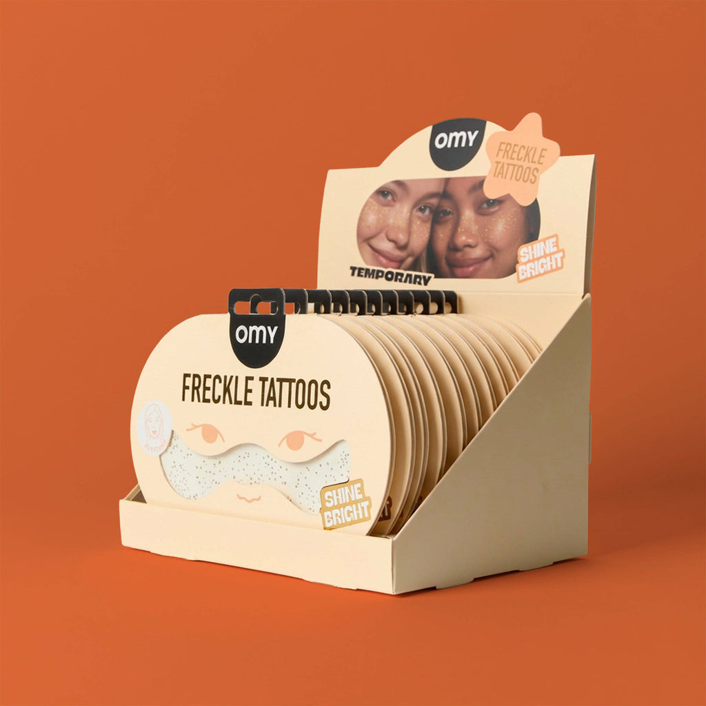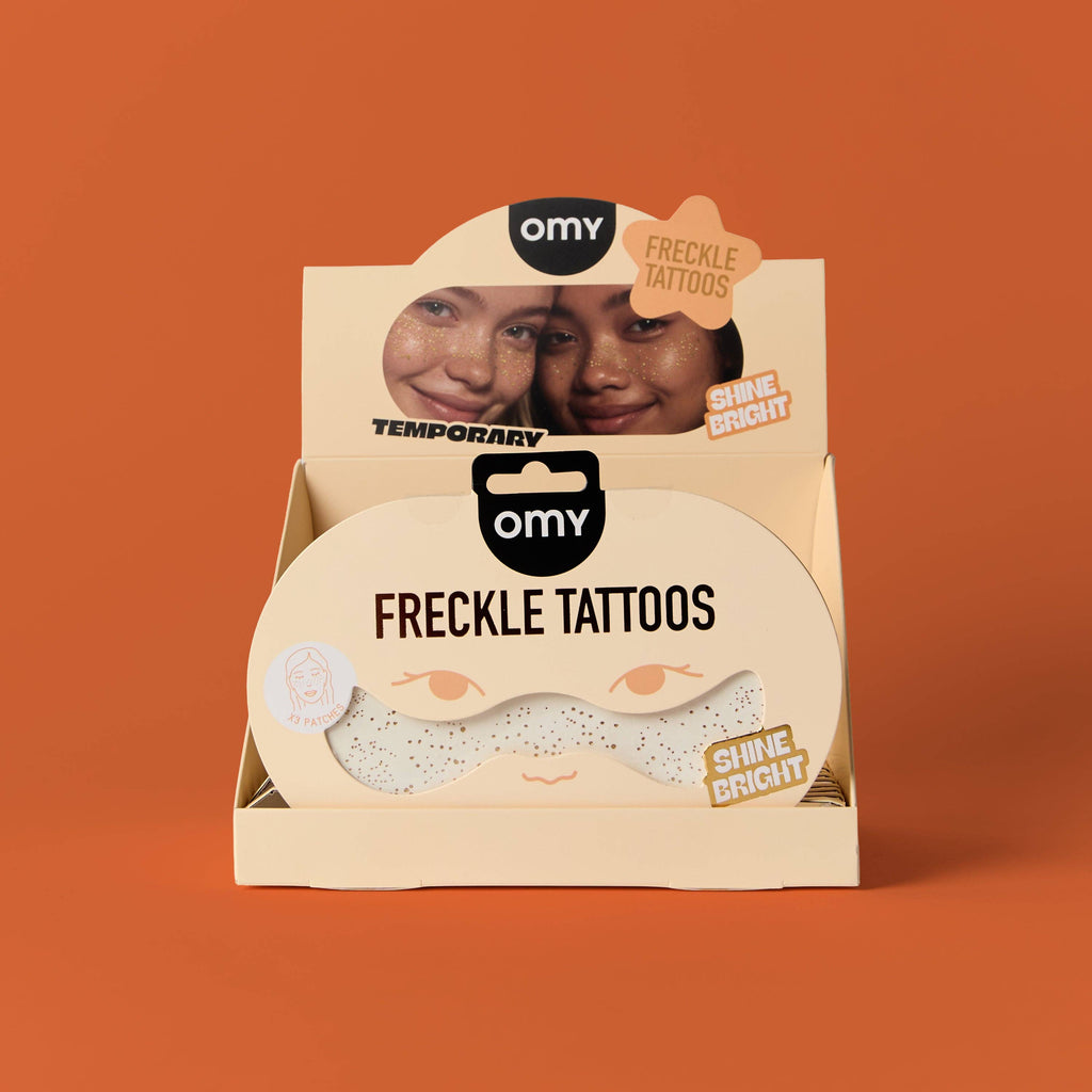 FRECKLE TATTOOS – SHINE BRIGHT ✨ Make your face sparkle! These golden freckle tattoos add a radiant glow, like a touch of magic on your cheeks.