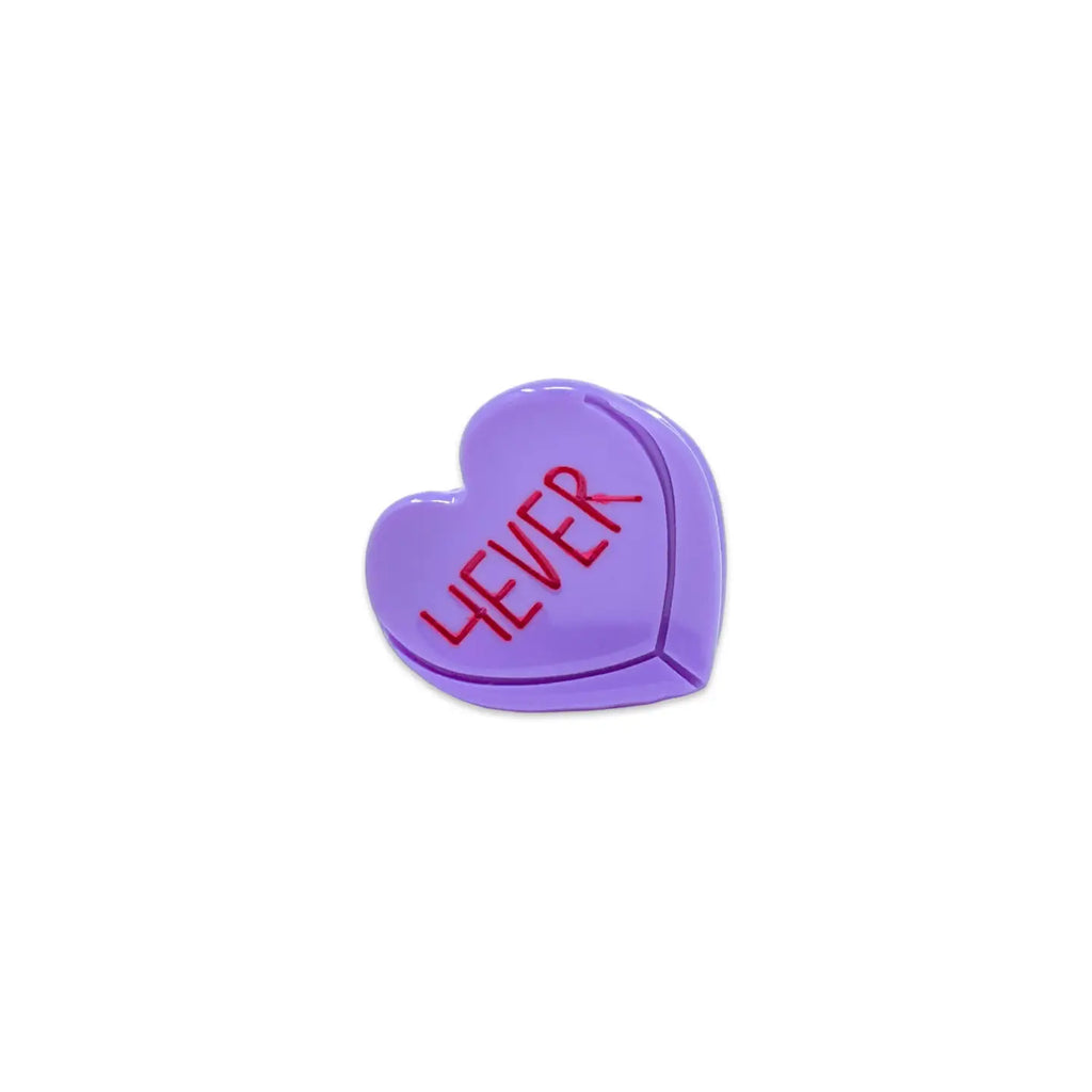 packs six tiny pastel clips full of Y2K texting charm. Each 1" x 1" x .5" claw is crafted from plant based cellulose acetate and hand painted with sweet candy heart inspired messages. Every clip is unique and adds a cute pop of color to any hairstyle.