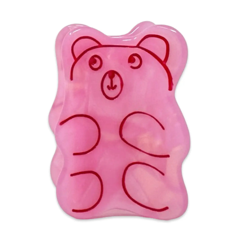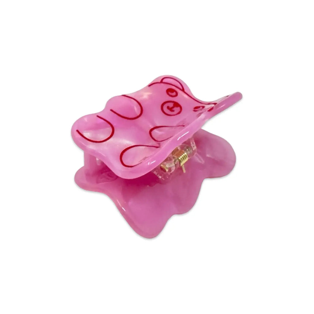 Make a sweet little statement with our Mini Pink Gummy Bear Hair Claw Clip. Crafted from eco friendly cellulose acetate, this 2" x 1" claw is a plant based alternative to plastic and the perfect tiny pop of candy pink. Hand painted details give each gummy bear a bit of personality, making every clip feel playful and fun. An original Jenny Lemons design.
