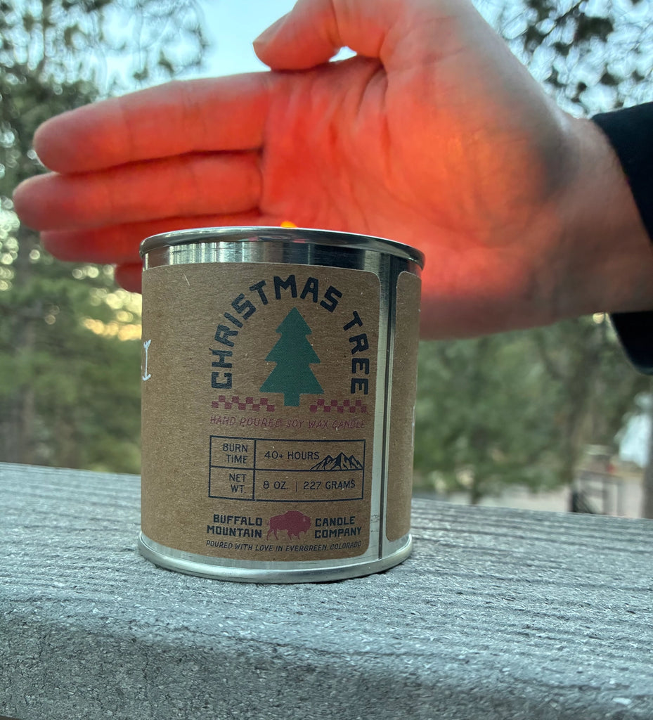 Looking for the perfect holiday gift? You found it! Our signature Blue Spruce scent, hand poured into a half pint candle tin with a kraft paper label you can decorate and use as a blank canvas for holiday wishes. A meaningful gift that's all heart, it's like a Christmas card that smells good! Soy wax candle, hand poured by us in our print shop in small batches in Evergreen, Colorado. Blue Spruce scent, so it smells magical like the woods (our favorite place in the world).