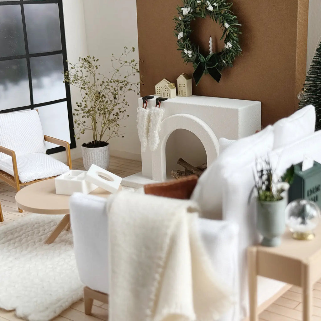 Soft, simple, and timeless—this cozy miniature stocking is handcrafted from textured ivory bouclé fabric and finished with a real leather hanging loop. Perfect for dollhouse mantels, stair rails, or festive vignettes, each stocking fully opens and coordinates seamlessly with our Mini Holiday Decor Collection. Sold as a set of 2.