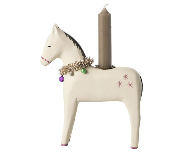Make a cosy Christmas atmosphere in your home with the wooden horse candle holder. An old Maileg classic which comes in an updated version. Candle lights Ø2,2 cm fits this horse perfectly. Notice : Do not leave the candles unattended. Candle NOT included.