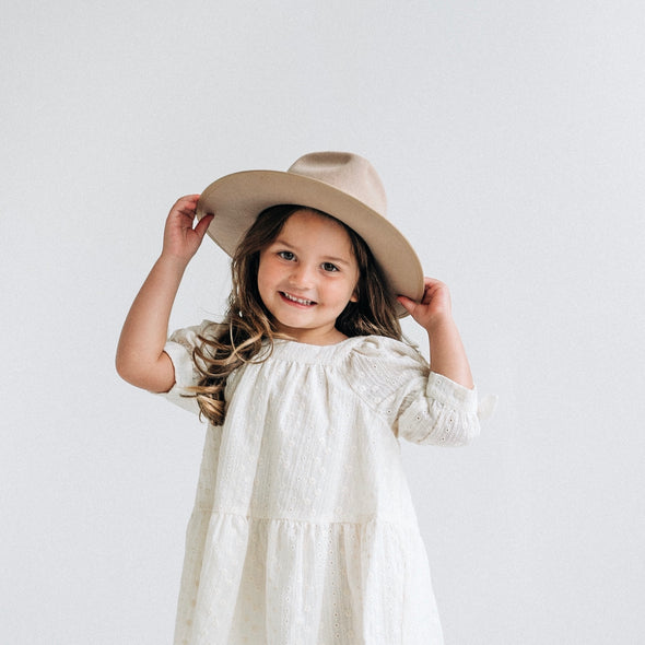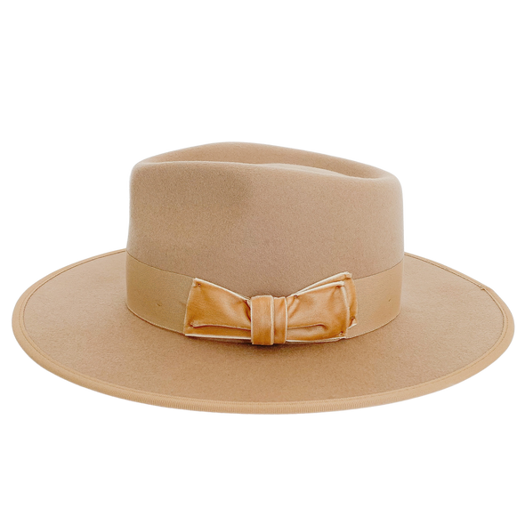 Much like big brother Ford, the 'Banks' is also a stiff brimmed wool fedora with a high rigged crown design. Banks has tonal gross grain edging, a wide ribbon detail and is finished with a buttery soft velvet bow.