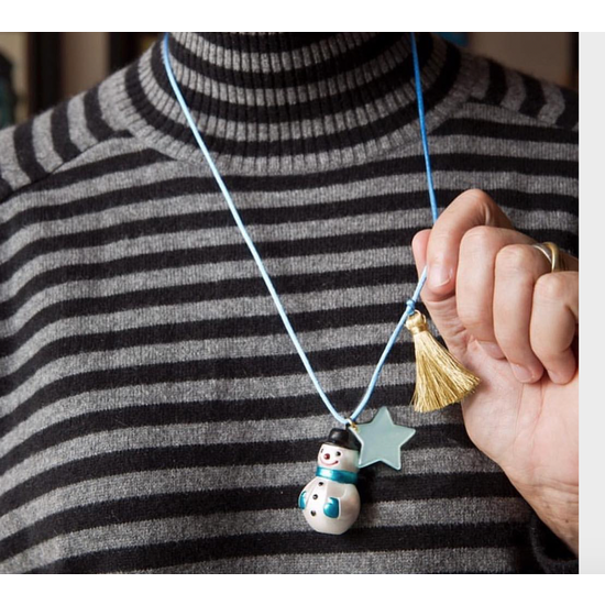 This fun Holiday Snowman Necklace with a shimmery white snow effect, teal gloves and scarves with his perfect black top hat has everything you need to get you into the holiday spirit! We of course add the perfect start snowflake and the perfect gold tassel to make this snowman necklace the perfect Holiday accessory!